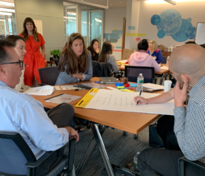 We kicked off the Master Class by thinking about what makes a good professional development experience, asking participants to create a “recipe” for the perfect professional development. Ingredients included agreed-upon norms, time-focused agendas, follow up, relevance, purposeful engagement, and more. A student on the Roger Williams design team, Nancy, spoke about how her team is working to “change PD to respect people’s learning styles…stick to the core elements of the school, practice what we are preaching, and [focus on] what we are trying to build.”
