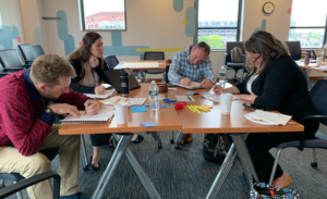 The design team from Resiliency Prep Academy in Fall River, MA sketch out their norms for a ‘Looking At Student Work’ protocol at Springpoint’s May Master Class